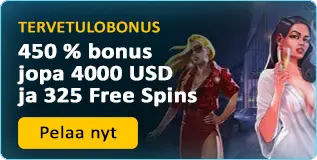 | Tervetuliaispaketti | Jopa 450 % bonus + 325 ilmaiskierrosta | Talletus 15 € |